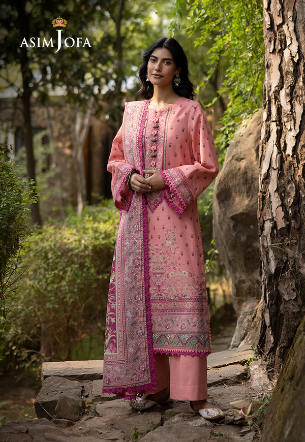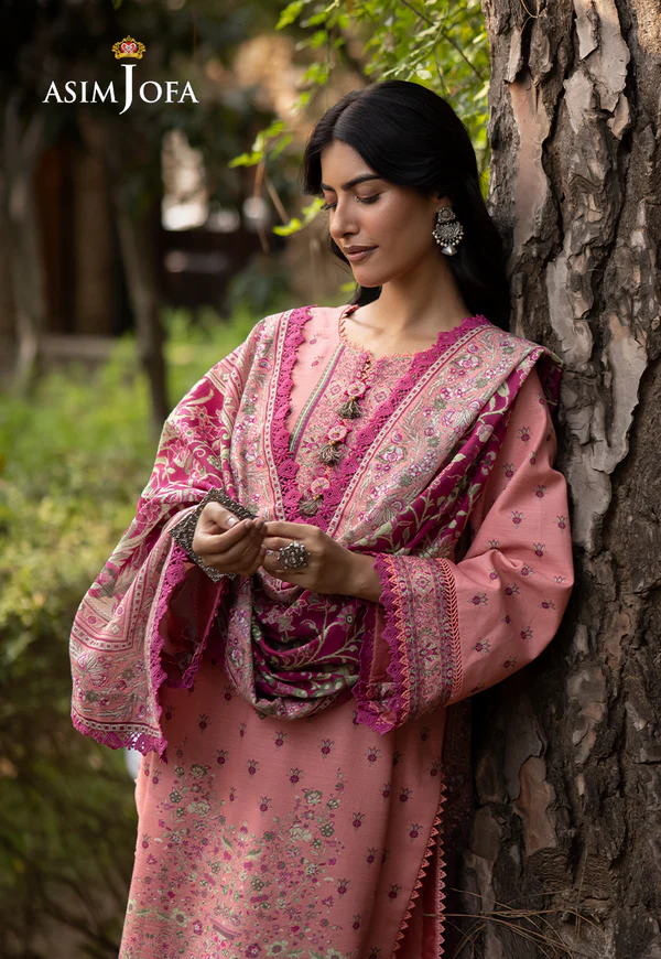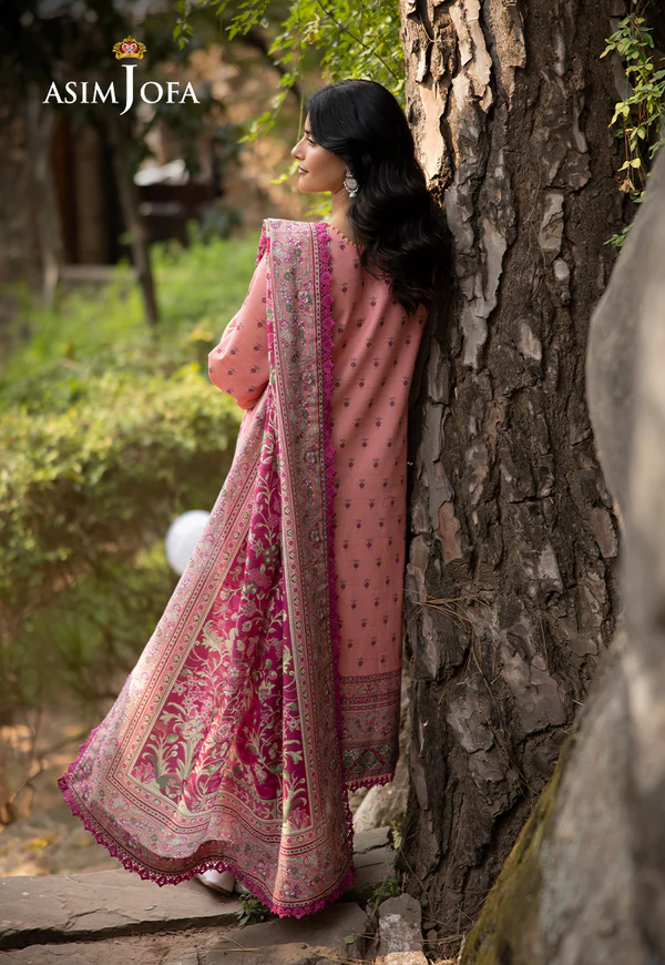 A soft and charming pink ensemble, where delicate prints bloom like a garden in full color. The printed dupatta flows effortlessly, adding a light and airy touch to the design, creating a graceful and vibrant look that’s perfect for any occasion.